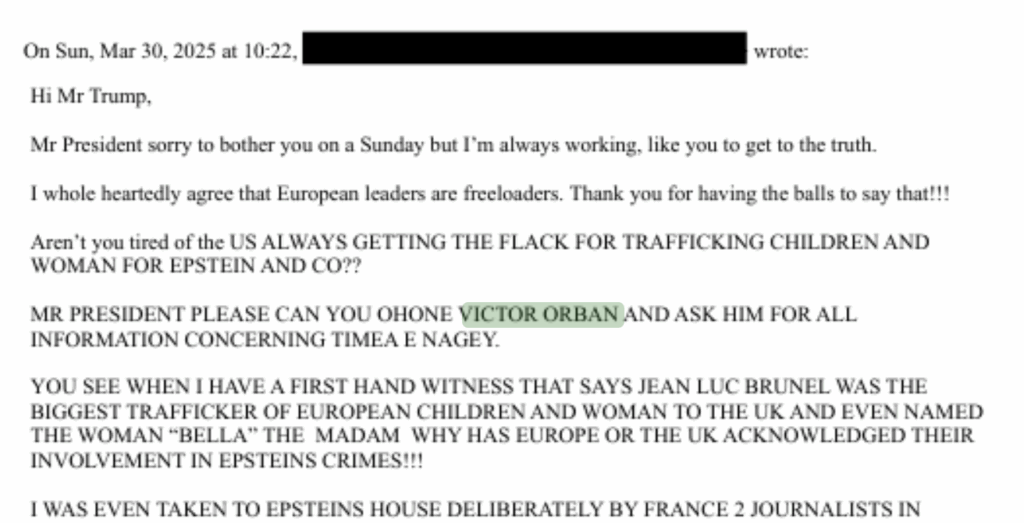Amikor beírtuk a keresőbe az „Orban” szót, a rendszer 42 találatot adott ki. Természetesen nem mindegyik vonatkozott a magyar miniszterelnökre (a találatok egy része Ludovic Orban román politikusra vagy David Orban technológiai befektetőre utalt). De azok a dokumentumok, amelyekben kifejezetten Orbán Viktor szerepelt, valóságos geopolitikai dinamitnak bizonyultak. A legrobbanékonyabb dokumentumok ebben az adatbázisban nem az elmúlt évtizedből, hanem 2025 februárjából, márciusából és áprilisából származnak.